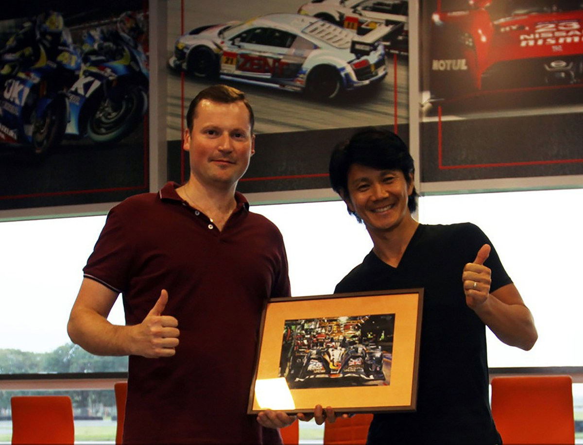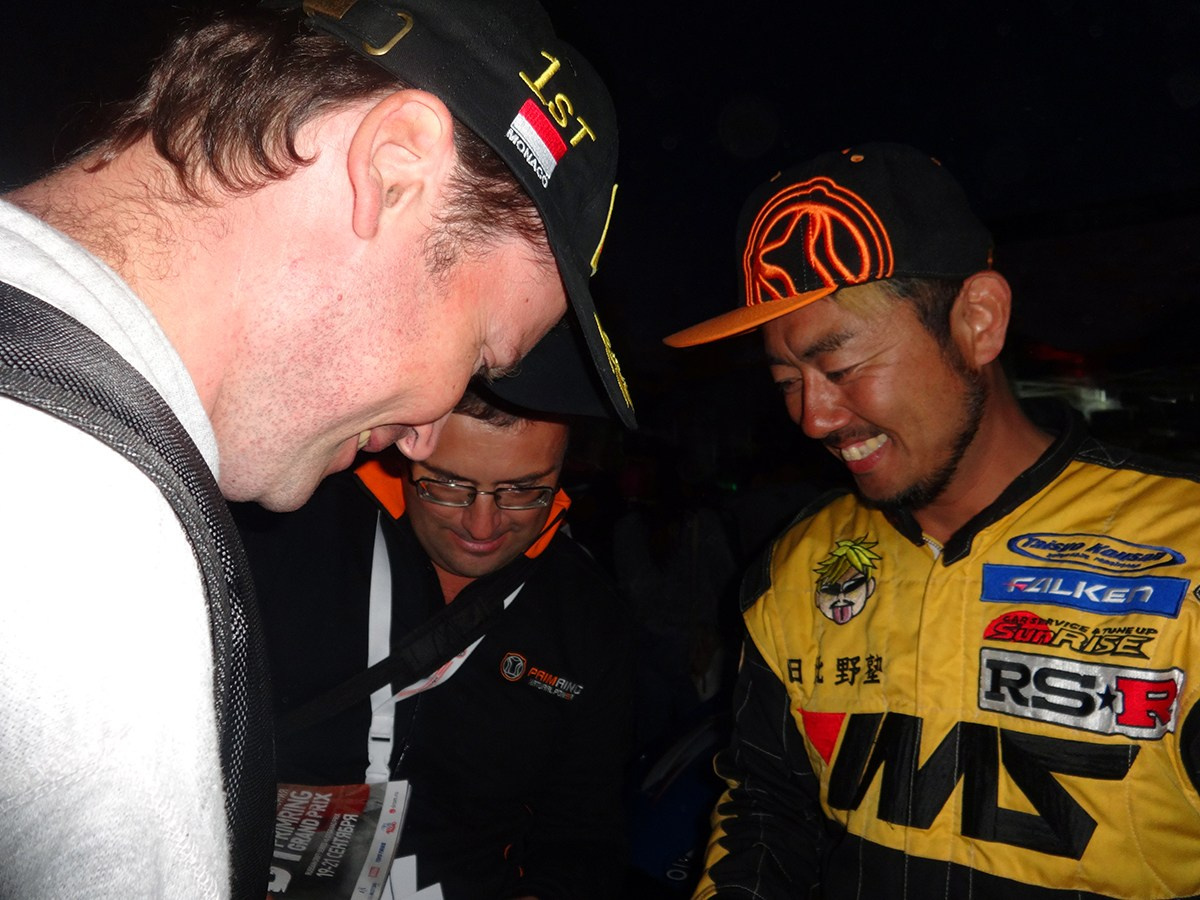 Я и редактор Евгений Коновалов журнал "Примринг", Японии гонщик Тэцуя Хибино. 21.09.2014