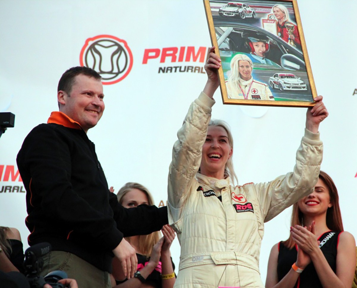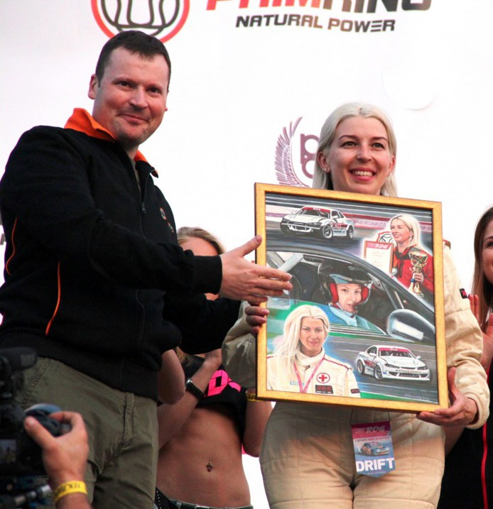 Приморское кольцо "Примринг" . Я на подиуме, дарю подарок гонщице Екатерине Седых. 26.04.2015
