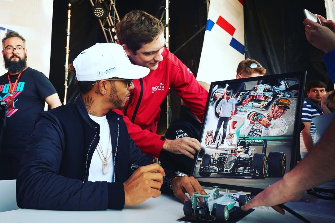 Мою картину подарили Даниилу Квят на гонках Ф-1 в Сочи. 08.10.2015