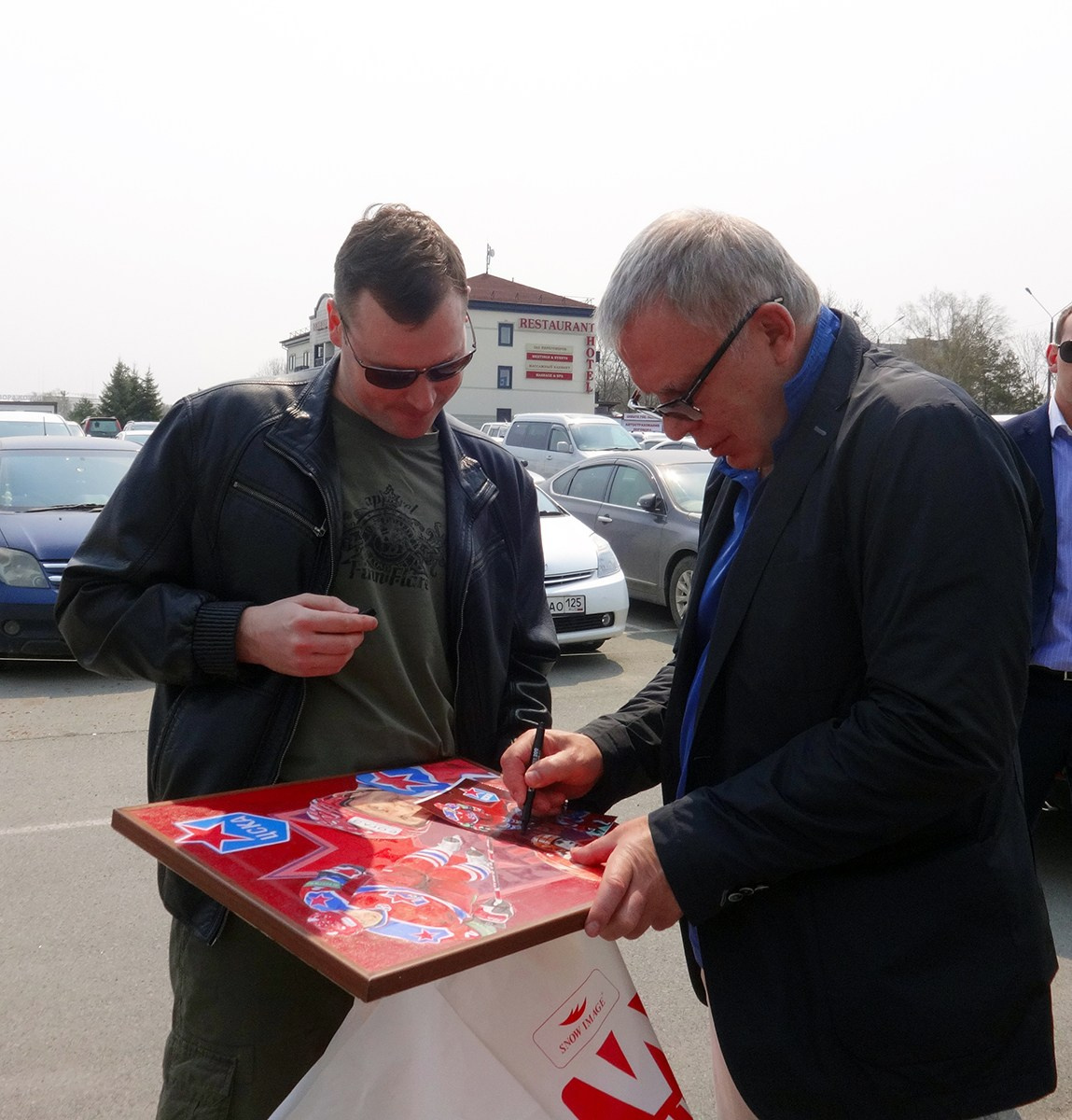 Встреча с Фетисовым сегодня 28.04.2015. Дарю свою картину. И конечно автограф на память.))